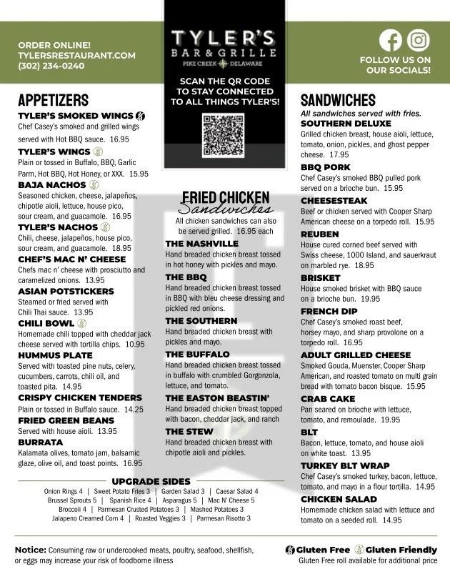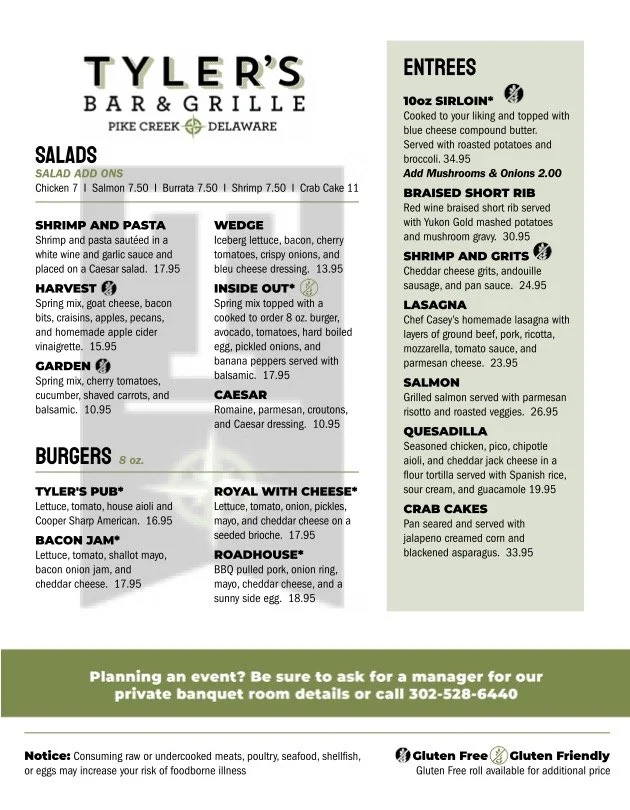 *Parties are required to order off the banquet menu. Tyler’s Bar and Grill weekly specials (including happy hour) are not extended to our events.